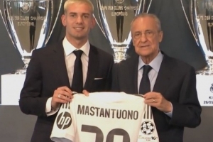 马斯坦托诺今夏从河床加盟皇马,据悉转会费4500万欧元。这位阿根廷小将今天迎来18岁生日,皇马今晚19点(当地时间13点)为他举办亮相仪式。
