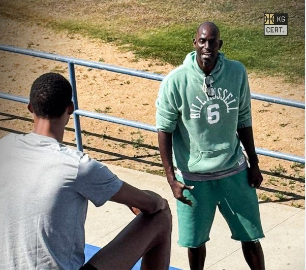 8月6日讯 前NBA球星凯文-加内特今日更新社媒,晒出他和马刺球星文班亚马一起训练的照片。