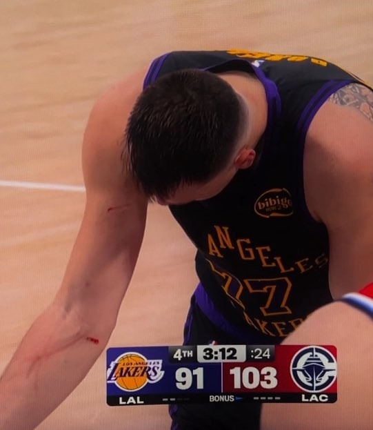 开云体育-谁抓的~东契奇罚球时看向手臂 好几道伤口&血迹斑斑